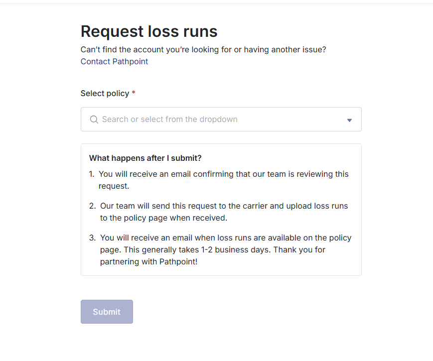 Loss Runs: Request a report of a policy’s claims history. Learn more about loss runs.