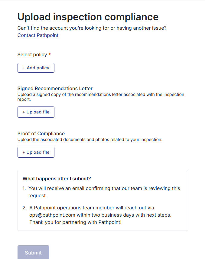 Proof of Compliance: Upload documents to show compliance with inspection requirements, such as proof of completed repairs or safety measures. Learn more about inspection results & compliance.