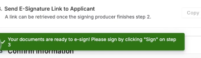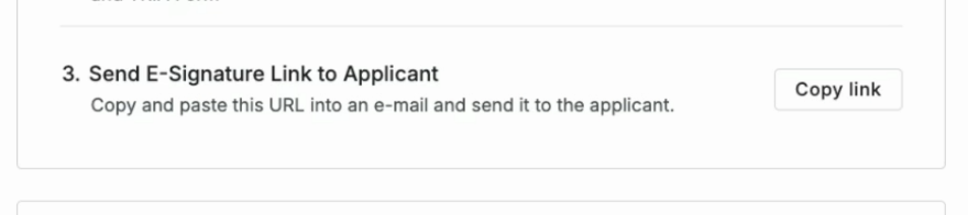 Once finished, go back to the application in your Pathpoint dashboard. Continue to Step Three: Send E-Signature Link to Applicant. Just select Copy Link and paste to an email to your client
