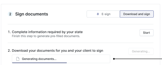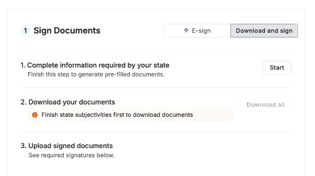 Under Sign Documents, choose E-sign to begin Step One: Complete information required by your state