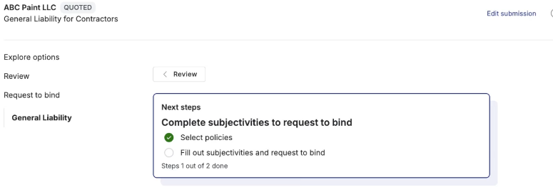 After receiving the necessary information, underwriting will assess whether it meets the criteria to finalize the coverage terms, necessitate revisions, or warrant a decline in coverage. If you are notified that a subjectivity or supplemental has been rejected, verify that you have uploaded the corrected form and resubmit.