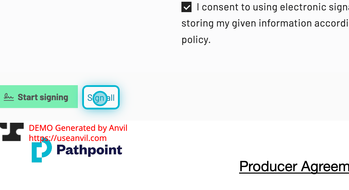 After reviewing the producer agreement, click on "Sign All" on the top-left of the document.