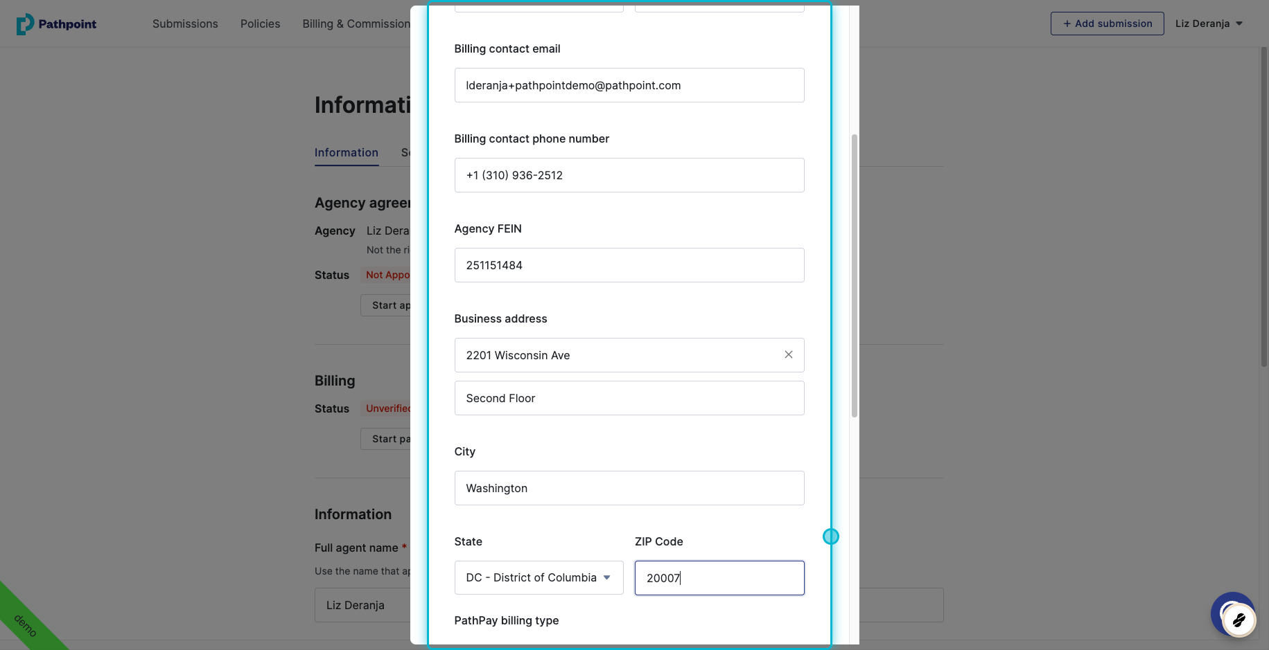Go back to your agent information page in Pathpoint, where you initially set up your PathPay account and refresh. It should now say "Verified" in green in the Billing area.